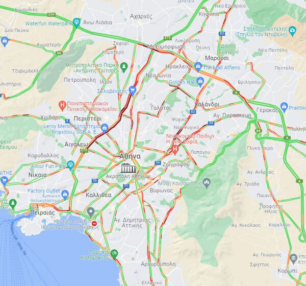 Προβλήματα και στα δύο ρεύματα της Λεωφόρου Κηφισίας, όπου τα οχήματα κινούνται με μειωμένη ταχύτητα. Καθυστερήσεις συναντούν όσοι οδηγούν σε Μεσογείων, Κατεχάκη και Αλεξάνδρας.