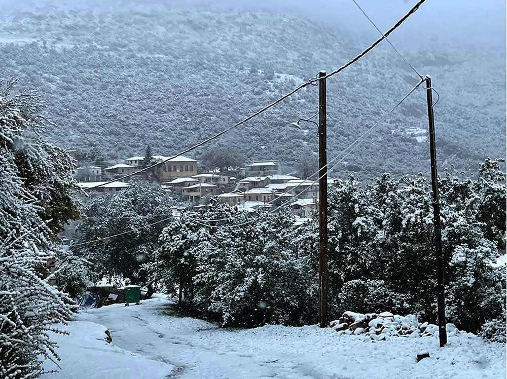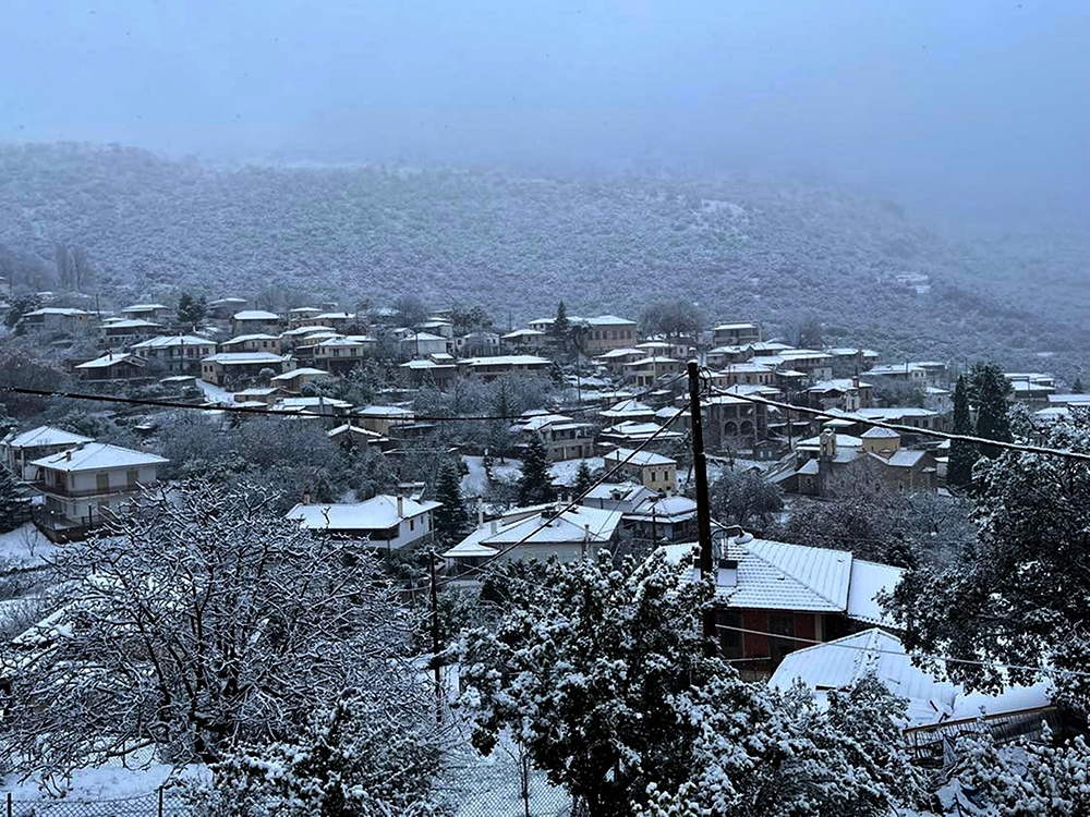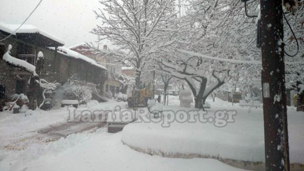 Σύμφωνα με το lamiareport.gr, σε υψόμετρο 736 μέτρων το χιόνι ξεπέρασε τους 40 πόντους με αποτέλεσμα το μηχάνημα του Δήμου Καμένων Βούρλων, να φτάσει με μεγάλη δυσκολία μέχρι την πλατεία του χωριού.