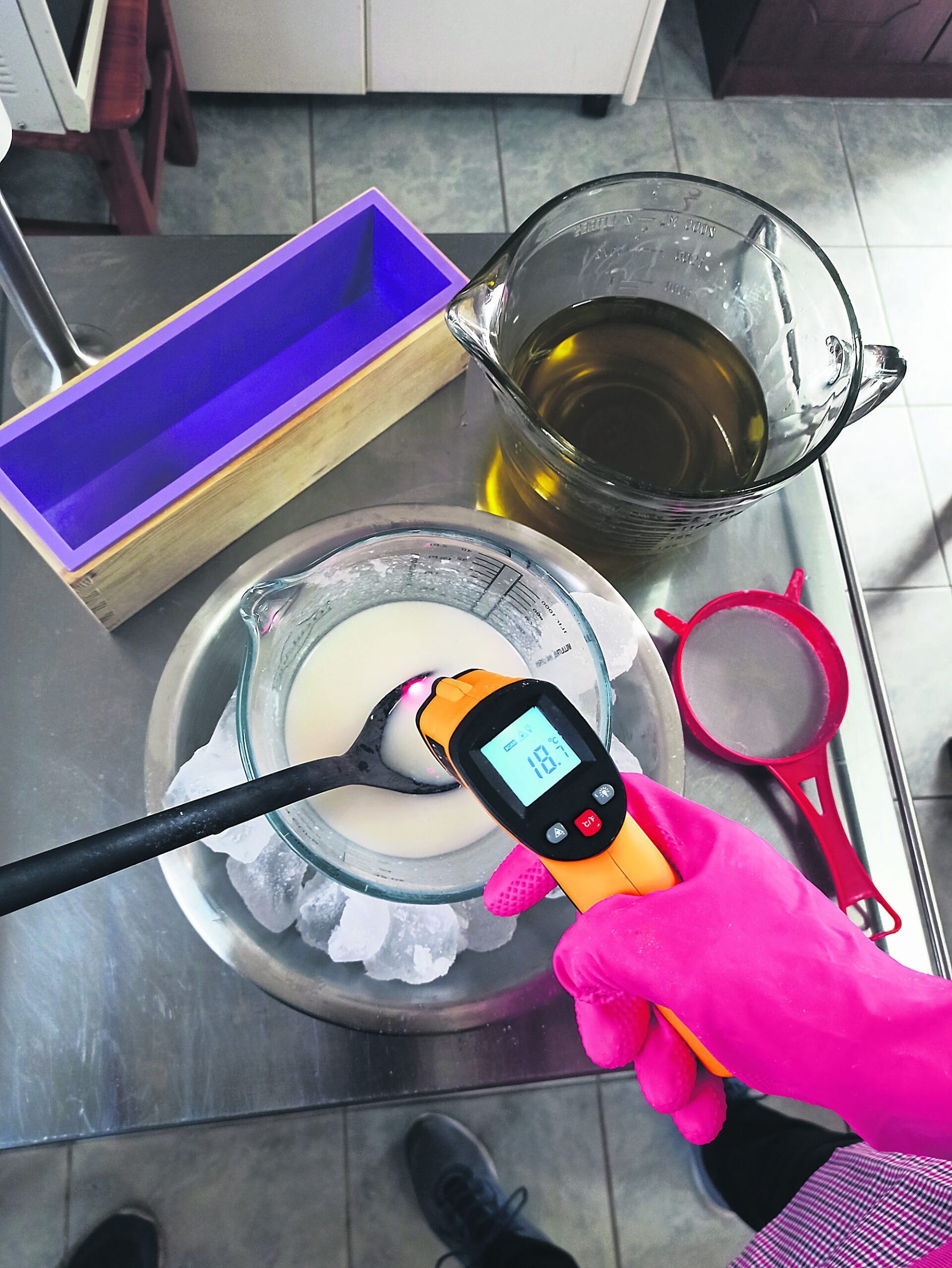 TIP: Για να εξασφαλίσουμε ότι το σαπούνι μας δεν θα ανεβάσει πολύ τη θερμοκρασία του στη φάση της σαπωνοποίησης, μπορούμε, όταν το βάλουμε στη φόρμα, ή να το τοποθετήσουμε μέσα σε ψυγείο (αν έχουμε κάποιο παλιό) για λίγες ώρες ή να έχουμε έναν ανεμιστήρα ή air condition να το δροσίζει!
