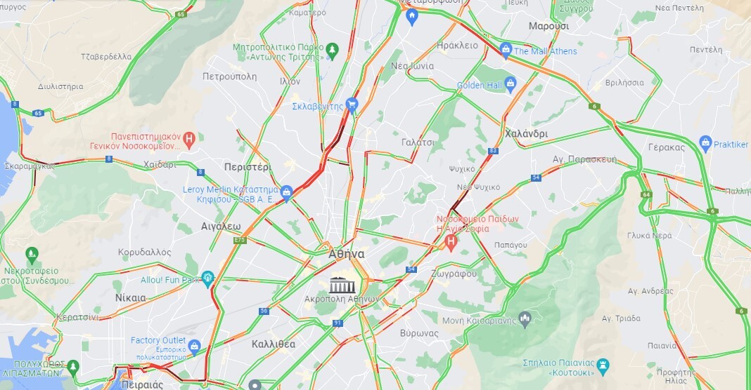 Κίνηση τώρα: Δείτε τον χάρτη της κυκλοφορίας που ακολουθεί