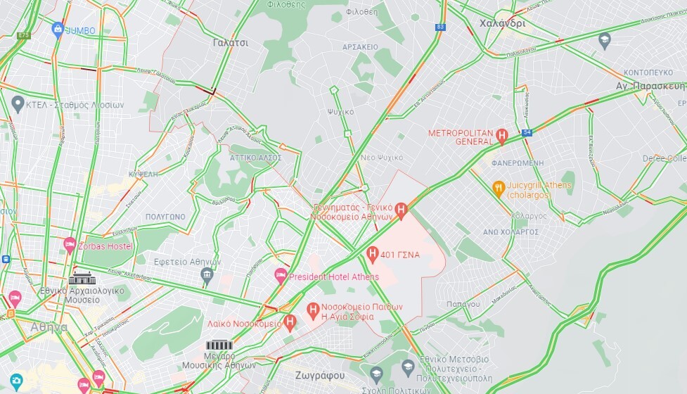 Κίνηση τώρα: Δείτε τον χάρτη κυκλοφορίας στην Αττική