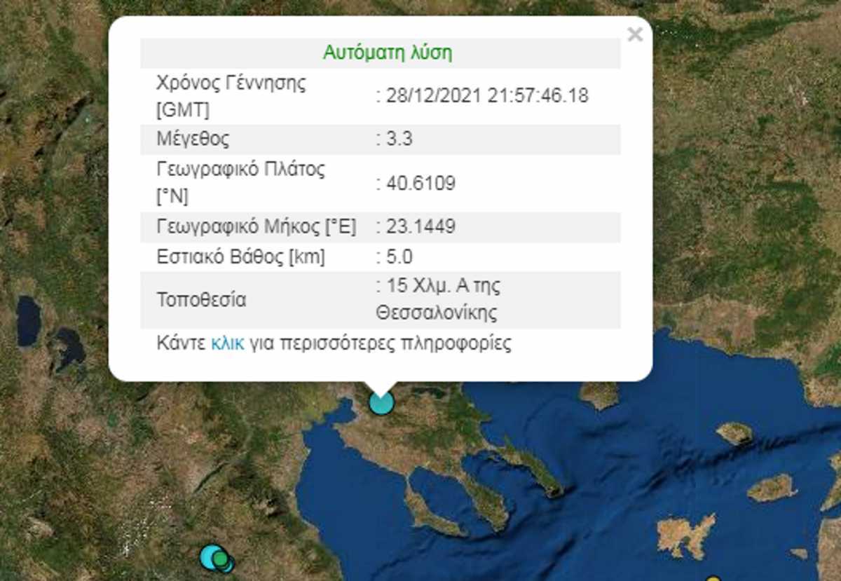 Σύμφωνα με την αυτόματη λύση του Γεωδυναμικού Ινστιτούτου, ο σεισμός σημειώθηκε 15 μόλις χιλιόμετρα ανατολικά της Θεσσαλονίκης και είχε μικρό εστιακό βάθος πέντε χιλιόμετρα.