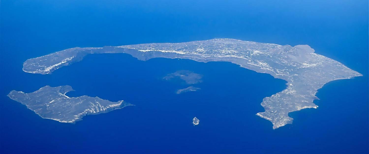 Αυτό που αποτελεί σήμερα τη Σαντορίνη είναι ένα μεγάλο μέρος του (τότε κυκλικού) νησιού σε σχήμα ημισελήνου, που βρίσκεται και η μεγαλύτερη καλντέρα της Γης.