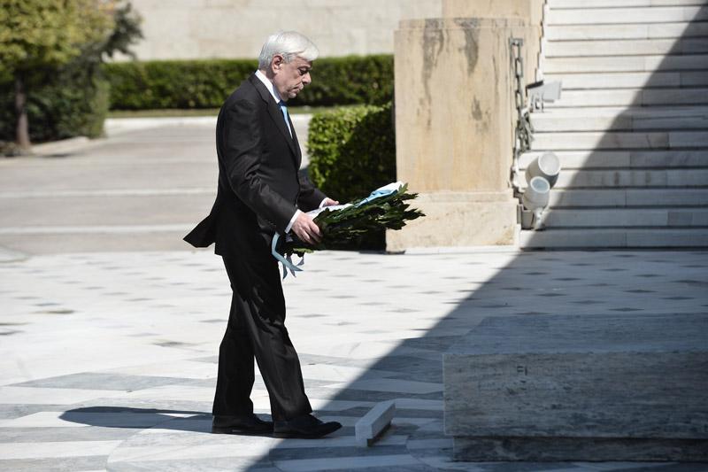 Είχε προηγηθεί δοξολογία παρουσία του Προέδρου της Δημοκρατίας Προκόπη Παυλόπουλου και στη συνέχεια, κατάθεση στεφάνου στο Μνημείο του Ανώστου Στρατιώτη.