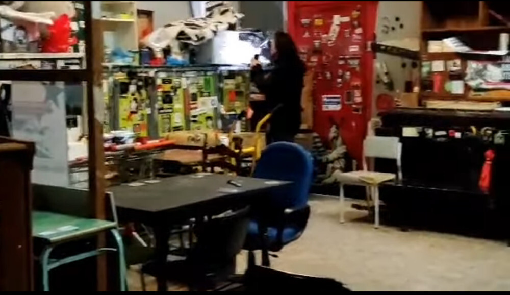 Το πανεπιστημιακό κτίριο μοιάζει με βομβαρδισμένο τοπίο. Σπασμένοι τοίχοι, πόρτες και τζάμια, κατεβασμένα φωτιστικά και ρημαγμένο πάτωμα.