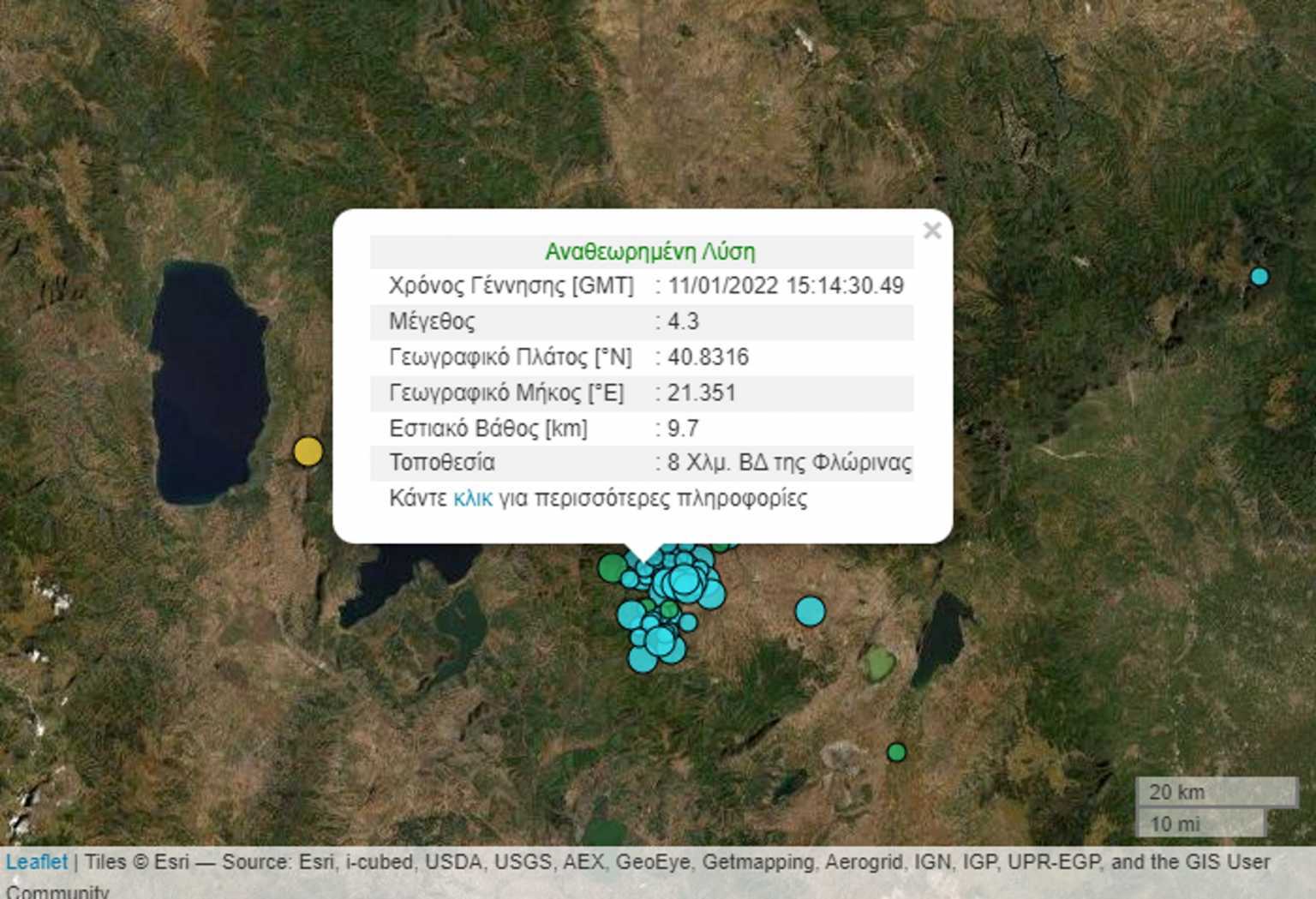 Την ίδια ώρα, απίστευτη αντοχή έδειξαν τα κτίρια της Φλώρινας, στον ισχυρό σεισμό των 5,3 ρίχτερ που έπληξε την περιοχή στις 23:43 προχθές το βράδυ. Ειδικά αν αναλογιστεί κανείς το γεγονός ότι είχε επίκεντρο μόλις τρία χιλιόμετρα δυτικά της πόλης και εστιακό βάθος 14 χιλιομέτρων, ενώ έγινε αισθητός σε Θεσσαλονίκη και Τρίκαλα. Προληπτικά, χθες δεν λειτούργησαν τα σχολεία. Ψυχραιμία συνιστούν οι σεισμολόγοι, οι οποίοι παρακολουθούν στενά το φαινόμενο υπογραμμίζοντας την κρισιμότητα των πρώτων 24ώρων.