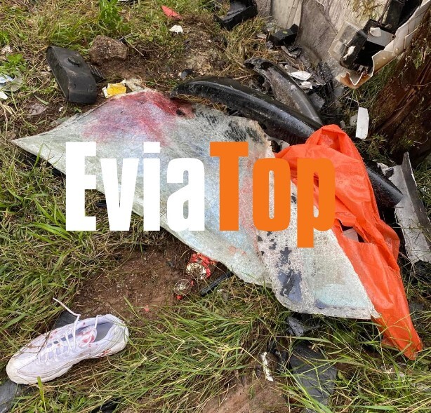 Η τοπική ιστοσελίδα eviatop.gr δημοσίευσε φωτογραφίες από το σημείο, όπου το αυτοκίνητο έφυγε με ταχύτητα και έπεσε πάνω σε τοίχο και κολόνα της ΔΕΗ.