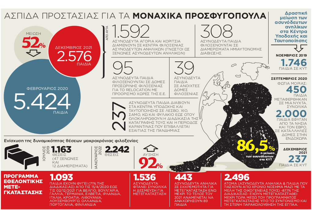 Πίσω από τους εντυπωσιακούς αριθμούς που δείχνουν τη βελτίωση της κατάστασης, υπάρχουν οι νέες ιστορίες των παιδιών που έφυγαν από τα κρατητήρια, την αστεγία, τις ακατάλληλες συνθήκες διαβίωσης και βρήκαν ένα ασφαλές πλαίσιο για την ψυχοπαιδαγωγική τους ανάπτυξη, είτε στην Ελλάδα είτε σε χώρες της Ευρωπαϊκής Ενωσης.