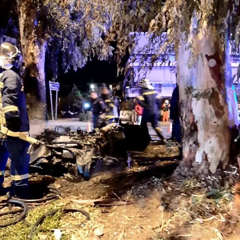 Συγκεκριμένα, το τροχαίο σημειώθηκε επί της οδού Κωνσταντίνου Καραμανλή 175, όταν το υπερπολυτελές αυτοκίνητο μάρκας Ferrari προσέκρουσε σε δέντρο με αποτέλεσμα να πάρει φωτιά.
