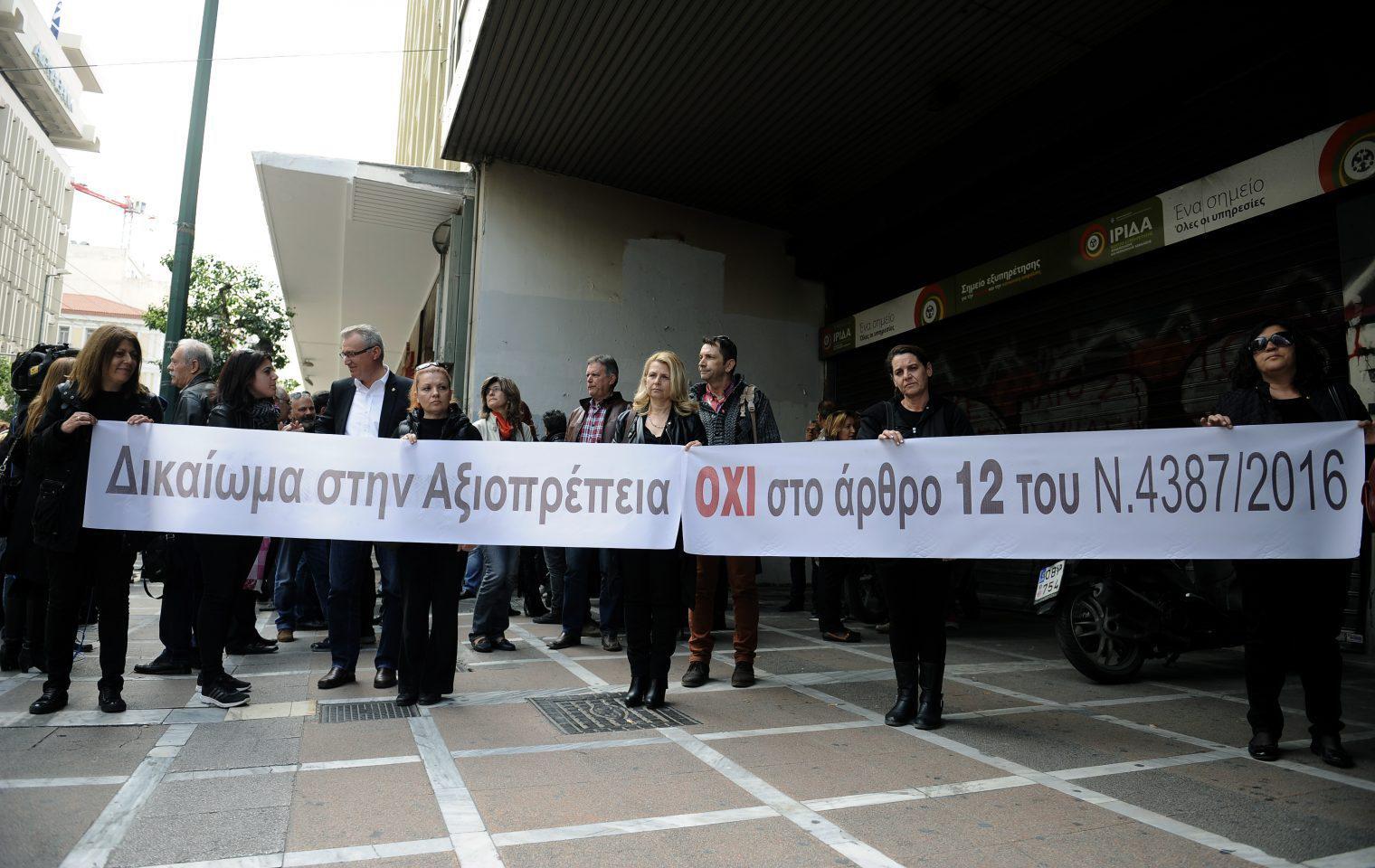 Παράλληλα, στη συγκέντρωση παραβρίσκονται και εκπρόσωποι της ΠΟΑΣΥ, με επικεφαλής τον πρόεδρό της Γρηγόρη Γερακαράκο, ο οποίος δήλωσε, μεταξύ άλλων: «Δεν μπορείς να πετάς στον Καιάδα χήρες και ορφανά. Πρέπει να καταργηθεί ο συγκεκριμένος νόμος».