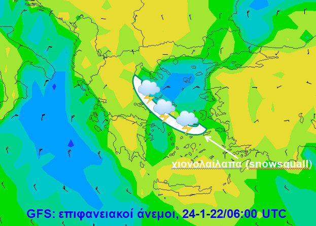 Ανατολική και νότια νησιωτική Ελλάδα: Μεγάλα ύψη χιονιού κυρίως στο Β-ΒΔ Αιγαίο, τις Κυκλάδες και την Κρήτη. Χιονοεκπλήξεις ακόμα και σε νοτιότερες παραθαλάσσιες περιοχές.