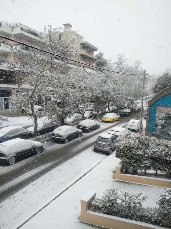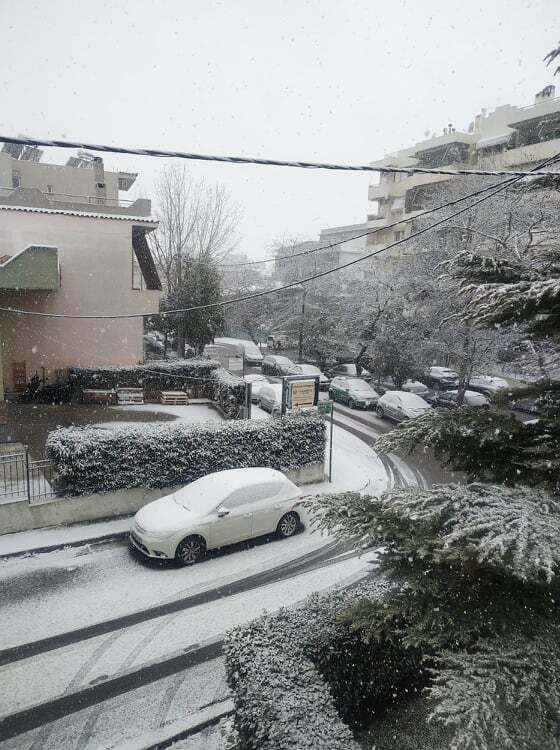 Είναι τόσο πυκνή η χιονόπτωση στην Αττική που μέσα σε λίγη ώρα το έστρωσε στην Κηφισιά!