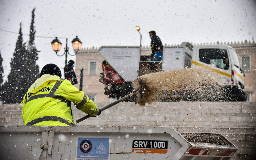 Πέντε βαρέα οχήματα, επτά οχήματα τύπου 4×4 εφοδιασμένα με αλατιέρες, δέκα φορτωτές τύπου JcB και έξι τύπου bobcat είναι διαθέσιμα από τη Διεύθυνση Οδοποιίας Αποχέτευσης και Κοινοχρήστων Χώρων και ήδη βρίσκονται σε στρατηγικά σημεία ώστε αν χρειαστεί να παρέμβουν για εκχιονισμό, ενώ ήδη από τα ξημερώματα έχει ξεκινήσει η ρίψη αλατιού στις κεντρικές αρτηρίες της πόλης (Αθηνάς, Σταδίου, Πανεπιστημίου, Αμαλίας, Βασ. Σοφίας, Λιοσίων, Ιερά Οδό, Φιλελλήνων, Βασ. Όλγας, Βασ. Κωνσταντίνου, Πατησίων, Αχαρνών, Αλεξάνδρας, Λένορμαν, Λεωφόρος Αθηνών, Πέτρου Ράλλη, Αγίας Άννης, Πανόρμου, Πλατεία Βάθη, Παράδρομος Εθνικής Οδού, Κωνσταντινουπόλεως αλλά και σε δρόμους με έντονη κλίση.