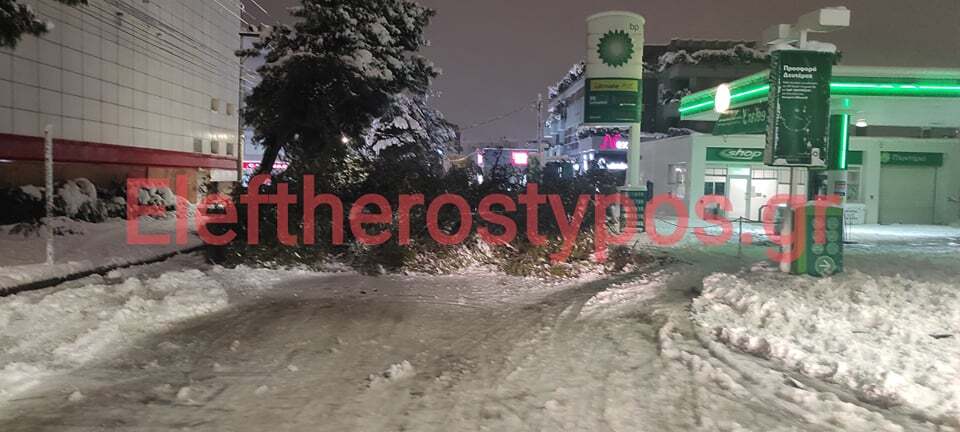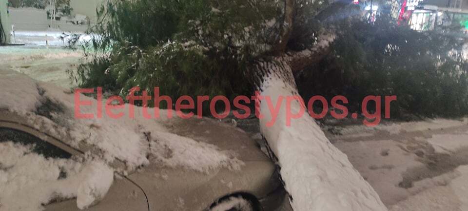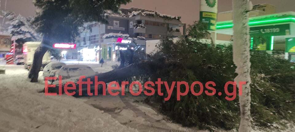 Το δέντρο που δεν άντεξε το βάρος από το χιόνι έπεσε κάθετα σε έναν από του κεντρικότερους δρόμους της περιοχής. Όπως αναφέρουν οι πληροφορίες από την πτώση του δέντρου δεν υπήρχε κάποιος τραυματισμός.