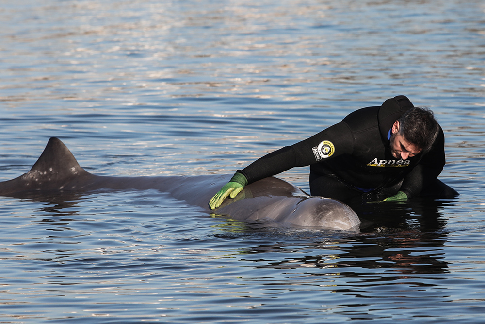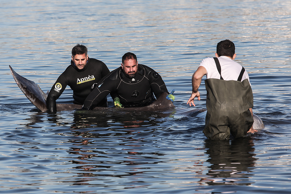 Στο σημείο όπου είχε εγκλωβιστεί το θαλάσσιο θηλαστικό είχαν σπεύσει, από νωρίς χθες το πρωί, στελέχη του ερευνητικού κέντρου διάσωσης και περίθαλψης κητώδων, στελέχη της Λιμενικής Αρχής Φλοίσβου, περιπολικό σκάφος του Λιμενικού, Εθελοντική Ομάδα Διάσωσης με ιδιώτες δύτες καθώς και κτηνίατρος.
