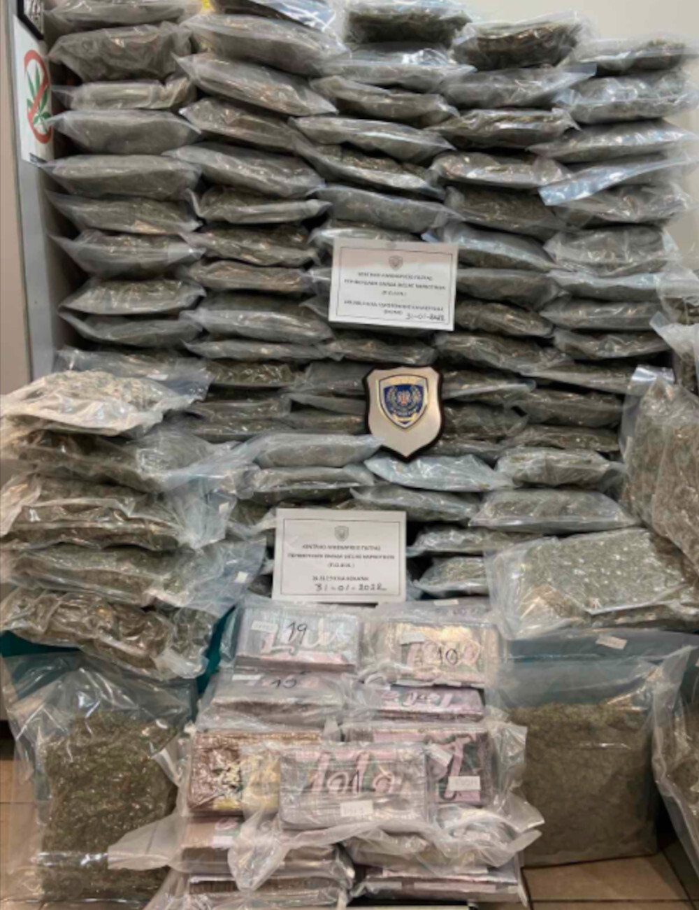 Από το Κεντρικό Λιμεναρχείο Πάτρας που διενεργεί την προανάκριση, κατασχέθηκαν οι ανωτέρω ποσότητες ναρκωτικών ουσιών, τα δύο Φ/Γ οχήματα (τράκτορες), ένα (01) επικαθήμενο, ένα (01) Ε.Ι.Χ. όχημα, πέντε (05) συσκευές κινητής τηλεφωνίας καθώς και το χρηματικό ποσό των δέκα έξι χιλιάδων εκατό ευρώ (16.100 €)».