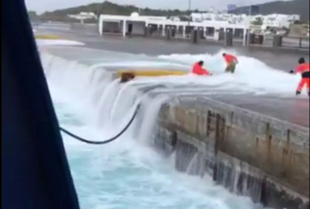 Ειδικότερα με τις εικόνες από το βίντεο το οποίο ανήρτησε στον λογαριασμό του το Forecast Weather Greece, φαίνεται ένα καράβι την ώρα που είναι έτοιμο να αναχωρήσει από το λιμάνι του νησιού των Κυκλάδων.