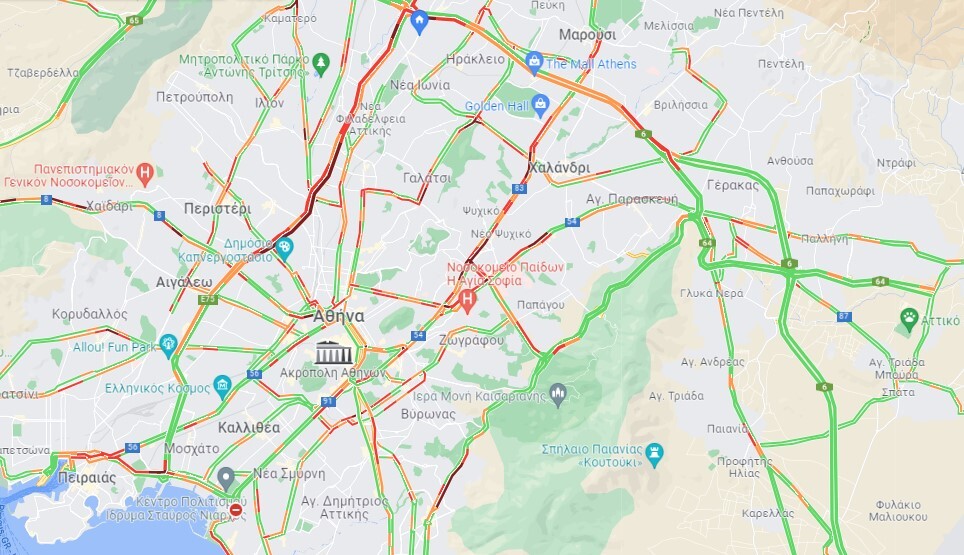 Κίνηση τώρα: Δείτε LIVE την κίνηση στους δρόμους της Αττικής