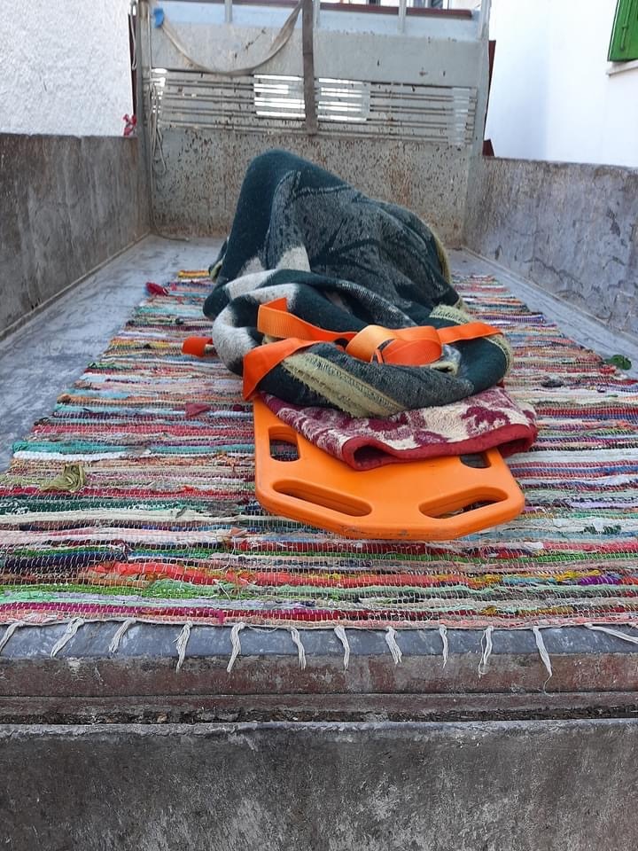 Μία γυναίκα που ήθελε να φτάσει στο Κέντρο Υγείας του νησιού, αναγκάστηκε να το κάνει με τον τρόπο που φαίνεται στην επόμενη φωτογραφία. Στην καρότσα φορτηγού, τυλιγμένη με μία κουβέρτα, δεμένη με ζώνη πάνω σε ένα πλαστικό, αυτοσχέδιο φορείο. Κάτω είχαν στρώσει ένα χαλάκι, με τον οδηγό που προσφέρθηκε για να την βγάλει από τα δύσκολα να περιγράφει τα όσα έγιναν.