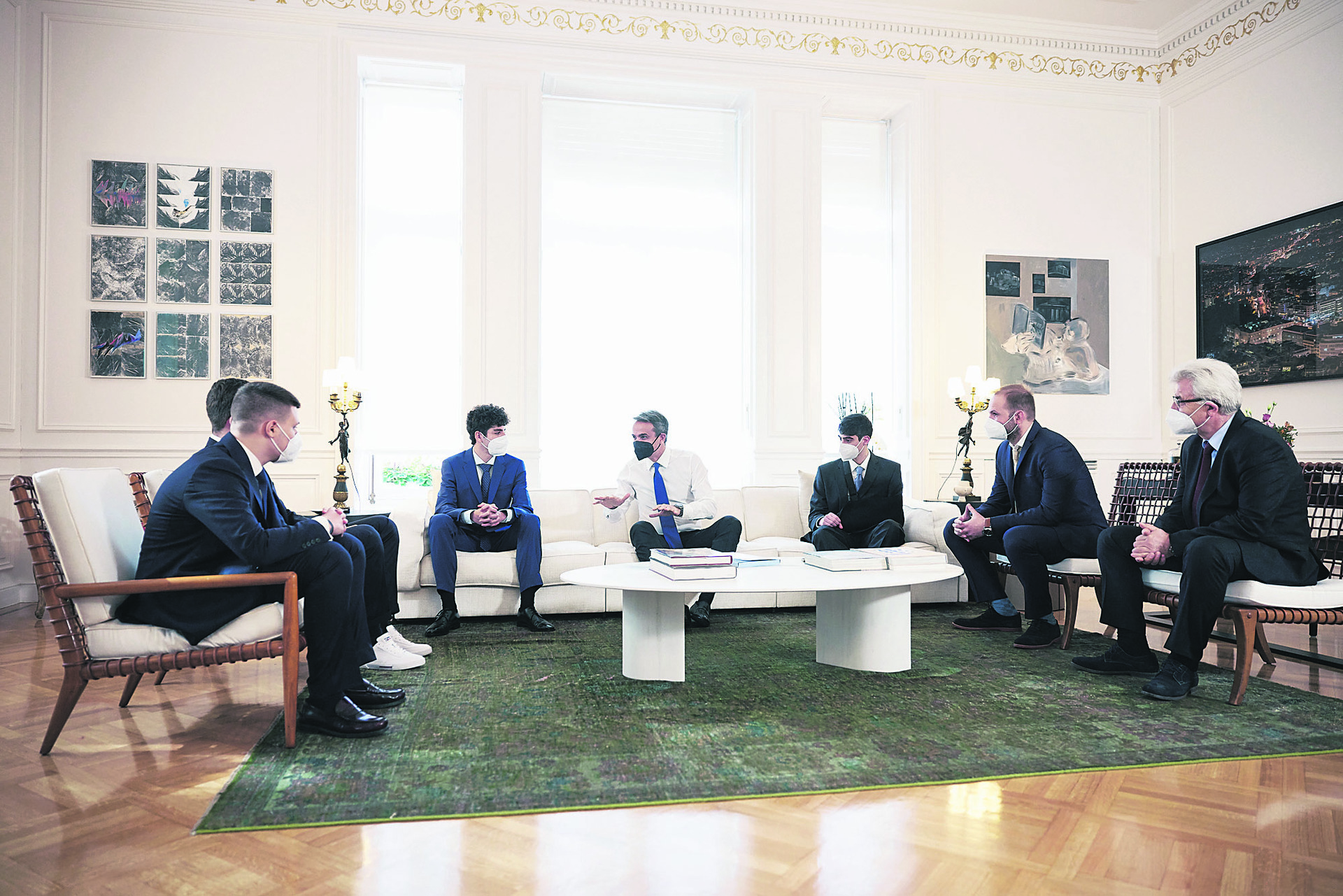 «Νιώσαμε ικανοποίηση και ευχαρίστηση. Οτι η προσπάθειά μας αναγνωρίστηκε». Αυτή ήταν η πρώτη αντίδραση των τεσσάρων μαθητών για την παρουσία τους στο Μέγαρο Μαξίμου, όπου τους προσκάλεσε ο πρωθυπουργός, Κυριάκος Μητσοτάκης, για να τους συγχαρεί για τη διάκρισή τους. «Μιλήσαμε για το πώς η ρομποτική μπορεί να βοηθήσει το μέλλον της χώρας, να πυροδοτήσει startup εταιρίες και ήταν για εμάς τιμή που ο πρωθυπουργός της χώρας ενδιαφέρθηκε να μιλήσουμε για όλα αυτά».