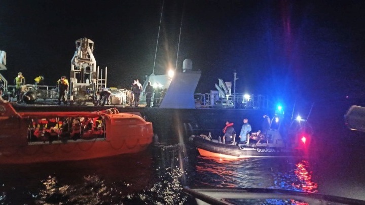 Τα πλάνα προέρχονται από ελικόπτερο του Λιμενικού που έχει σπεύσει στο σημείο συμμετέχοντας στην επιχείρηση εντοπισμού και διάσωσης των επιβαινόντων. Όπως διακρίνεται, το μεγαλύτερο μέρος του πλοίου έχει καταστραφεί ολοσχερώς με τη φωτιά να συνεχίζει να καίει και την ατμόσφαιρα λόγω του έντονου καπνού να είναι αποπνικτική.