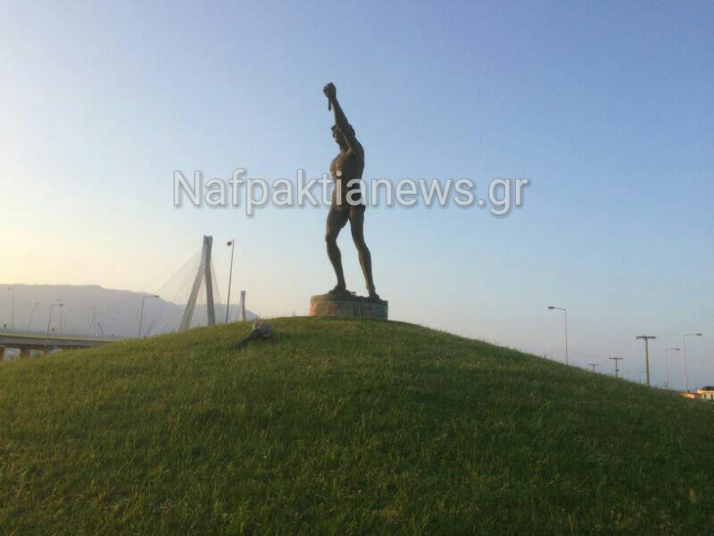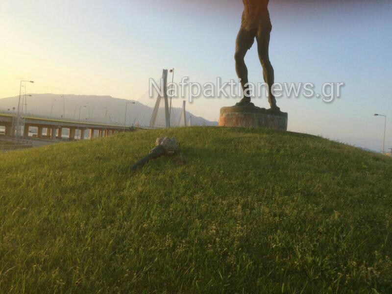 Από τον δρομέα που κοσμεί την κυκλική πλατεία απέναντι από τη Γέφυρα Ρίου-Αντιρρίου κόπηκε ο πυρσος και έπεσε πάνω στο γκαζόν.