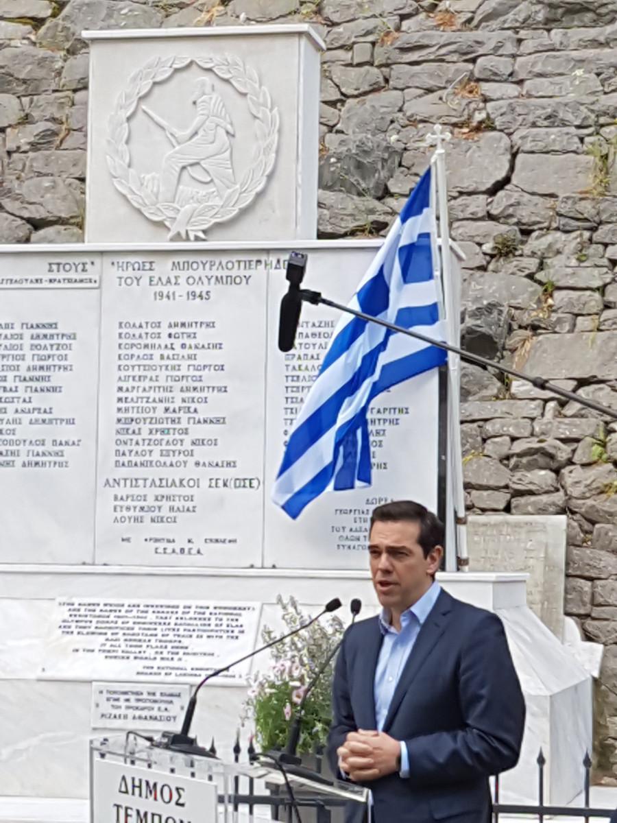 Όπως είχε προαναγγελθεί, κατέθεσε στεφάνι στη μνήμη των θρυλικών σαμποτέρ του τάγματος μηχανικού Ολύμπου.