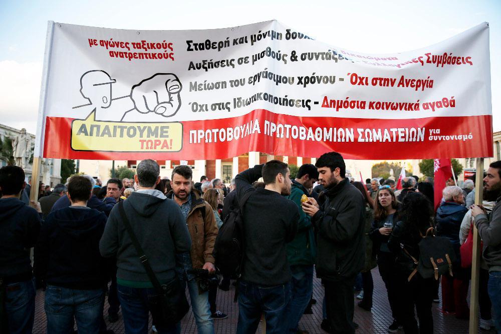 Με σύνθημα «φτάνει πια», εργαζόμενοι του δημοσίου, αλλά και του ιδιωτικού τομέα, συγκεντρώθηκαν αρχικά στα Προπύλαια και στη συνέχεια πραγματοποίησαν πορεία στη Βουλή και στα γραφεία της Ευρωπαϊκής Ένωσης, θέλοντας με τον τρόπο αυτό να διαμαρτυρηθούν για τις διαπραγματεύσεις της κυβέρνησης με τους δανειστές, που, όπως δείχνουν οι μέχρι τώρα πληροφορίες, θα φέρουν νέες μειώσεις στις συντάξεις και στο αφορολόγητο. Στο συλλαλητήριο εκτός απο την ΑΔΕΔΥ και τα εργατικά σωματεία, συμμετέχουν και πολιτικοί φορείς.
