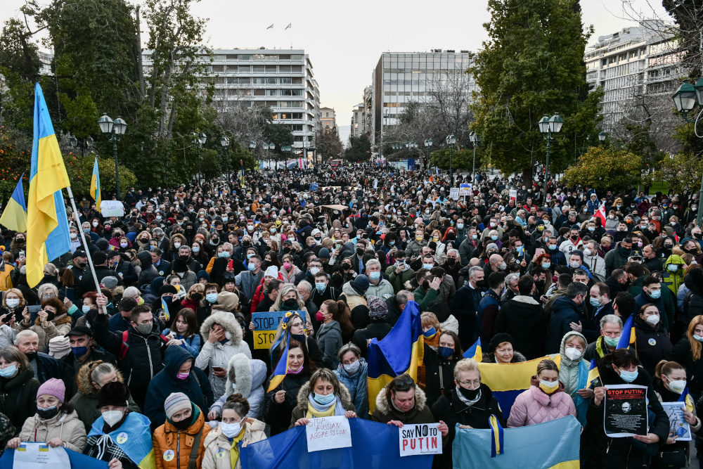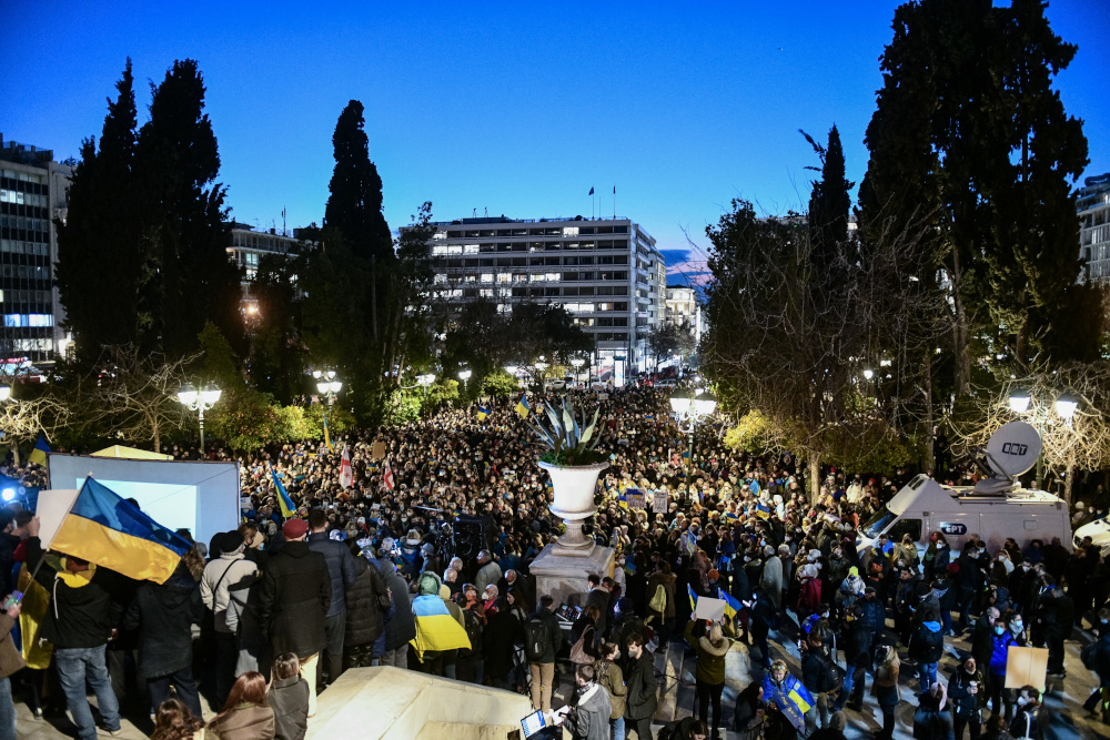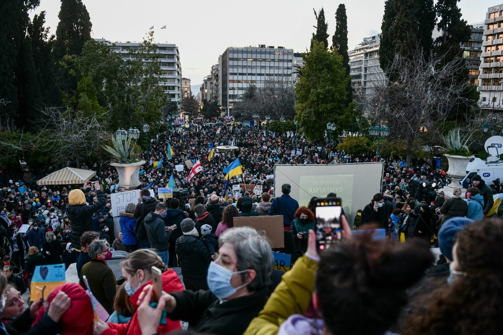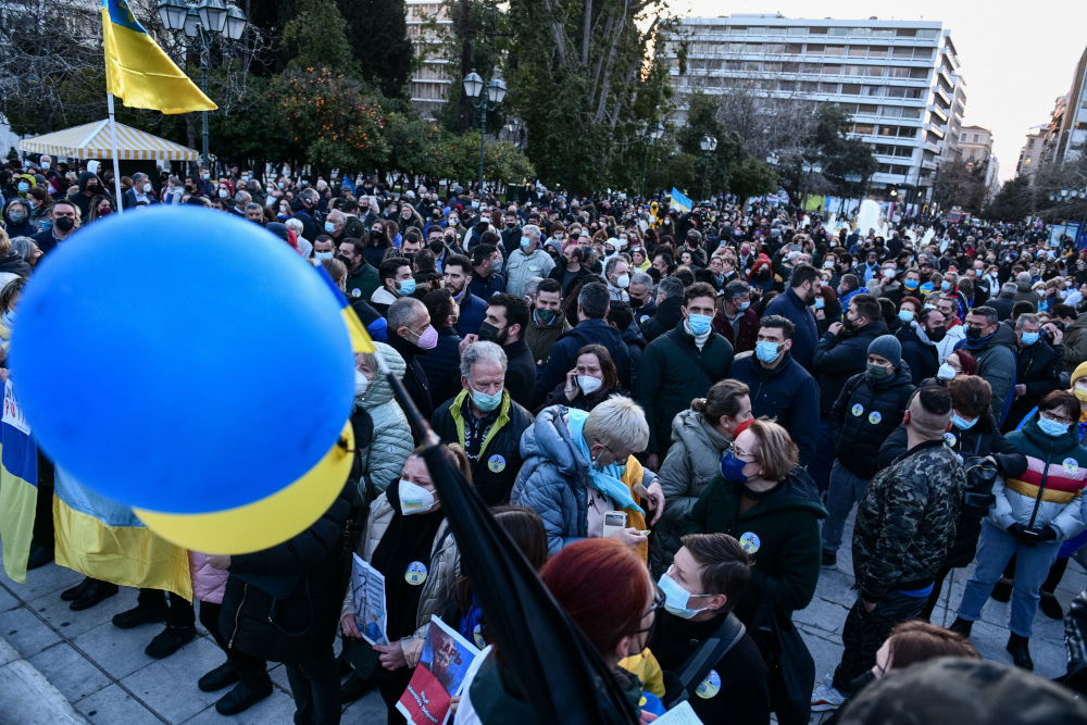 Ανάμεσα στους διαδηλωτές βρίσκονται η υφυπουργός Τουρισμού, Σοφία Ζαχαράκη, η οποία ανέφερε μεταξύ άλλων, ότι «βρίσκομαι σήμερα εδώ για να εκφράσω τη συμπαράσταση και τη στήριξη μου στον ουκρανικό λαό» και ο δήμαρχος Αθηναίων, Κώστας Μπακογιάννης.