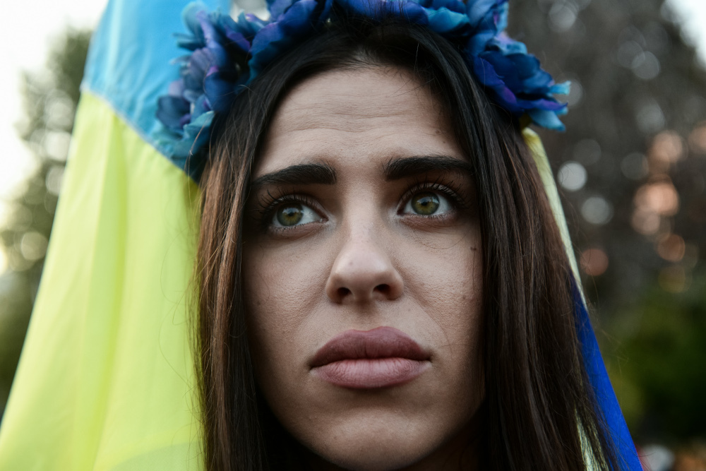 Ακόμη, αρκετοί είναι εκείνοι που φορούν μπλούζες και αυτοκόλλητα που αναγράφεται το σύνθημα #μετηνουκρανία κι από πάνω απεικονίζεται το πρόσωπο του Βλατιμίρ Πούτιν ζωγραφισμένο με ένα κόκκινο Χ.