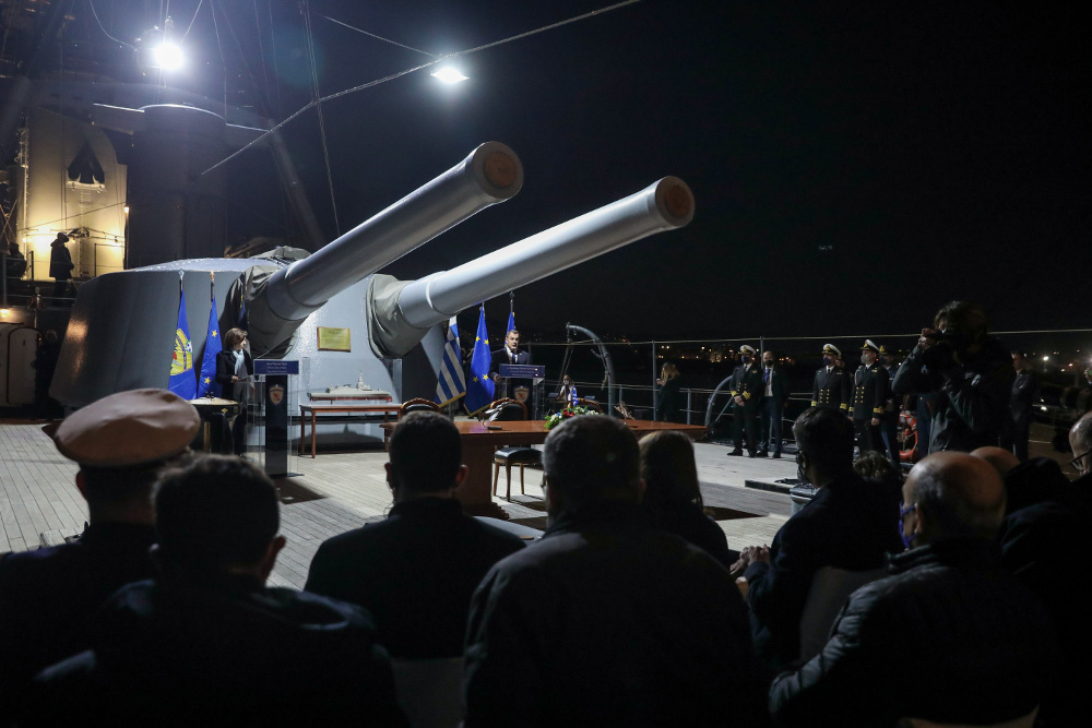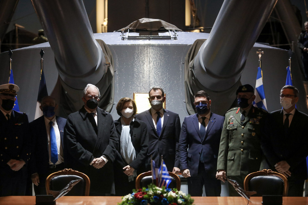 Από ελληνικής πλευράς υπέγραψε ο γενικός διευθυντής εξοπλισμών και εκ μέρους των γάλλων κατασκευαστών ο διευθύνων σύμβουλος της Naval Group.