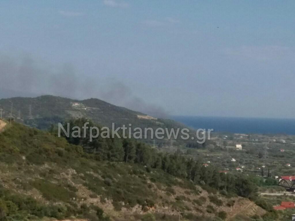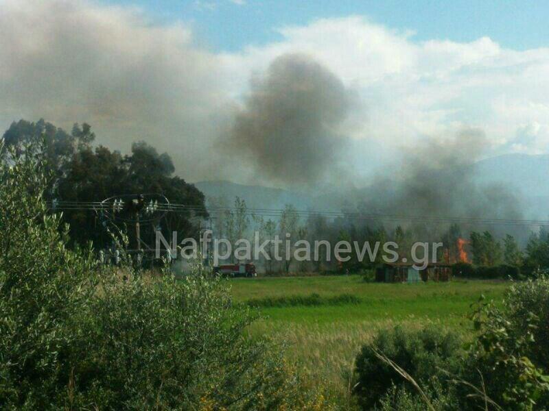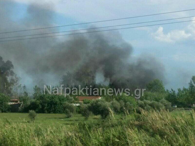 Σύμφωνα με την Πυροσβεστική η φωτιά καίει καλαμιές.