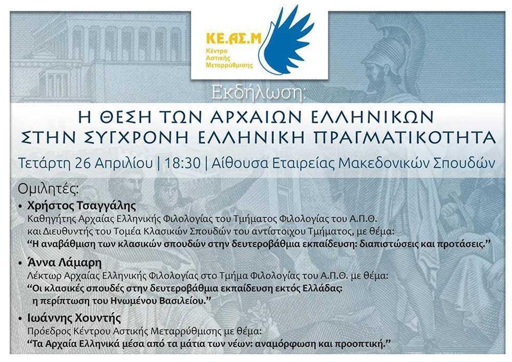 Ιωάννης Χουντής, Πρόεδρος Κέντρου Αστικής Μεταρρύθμισης με θέμα: “Τα Αρχαία Ελληνικά μέσα από τα μάτια των νέων: αναμόρφωση και προοπτική.”