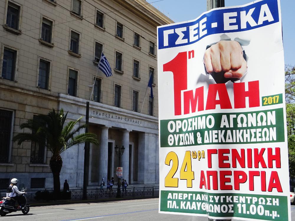 ΓΣΕΕ, ΑΔΕΔΥ και ΕΚΑ καλούν στους πολίτες στη συγκέντρωση διαμαρτυρίας που έχει προγραμματιστεί στις 11 το πρωί στην Πλατεία Κλαυθμώνος. Όπως επισημαίνουν τα συνδικάτα η φετινή απεργία της Πρωτομαγιάς και οι απεργιακές συγκεντρώσεις, αποκτούν ιδιαίτερα αγωνιστικά χαρακτηριστικά, με δεδομένο το γεγονός ότι η κυβέρνηση ετοιμάζεται να φέρει προς ψήφιση νέα μνημονιακά μέτρα.