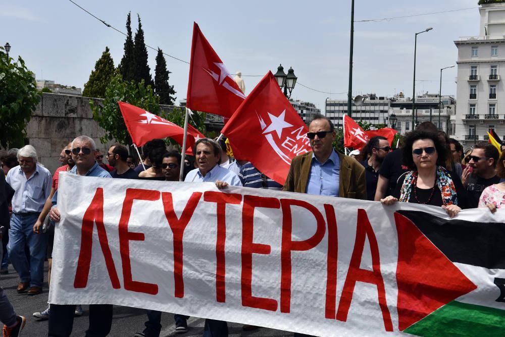 Η ΛΑΕ, φορείς της Παλαιστινιακής Κοινότητας και το ΜΕΤΑ, συμμετέχοντας σπς Πρωτομαγιάτικες συγκεντρώσεις, στην Αθήνα πραγματοποίησαν προσυγκέντρωση στη Χαλκοκονδύλη και Πατησίων και στη συνέχεια έκαναν πορεία ακολουθώντας τη διαδρομή Κλαυθμώνος, Βουλή, Χίλτον και κατέληξε στην πρεσβεία του Ισραήλ.