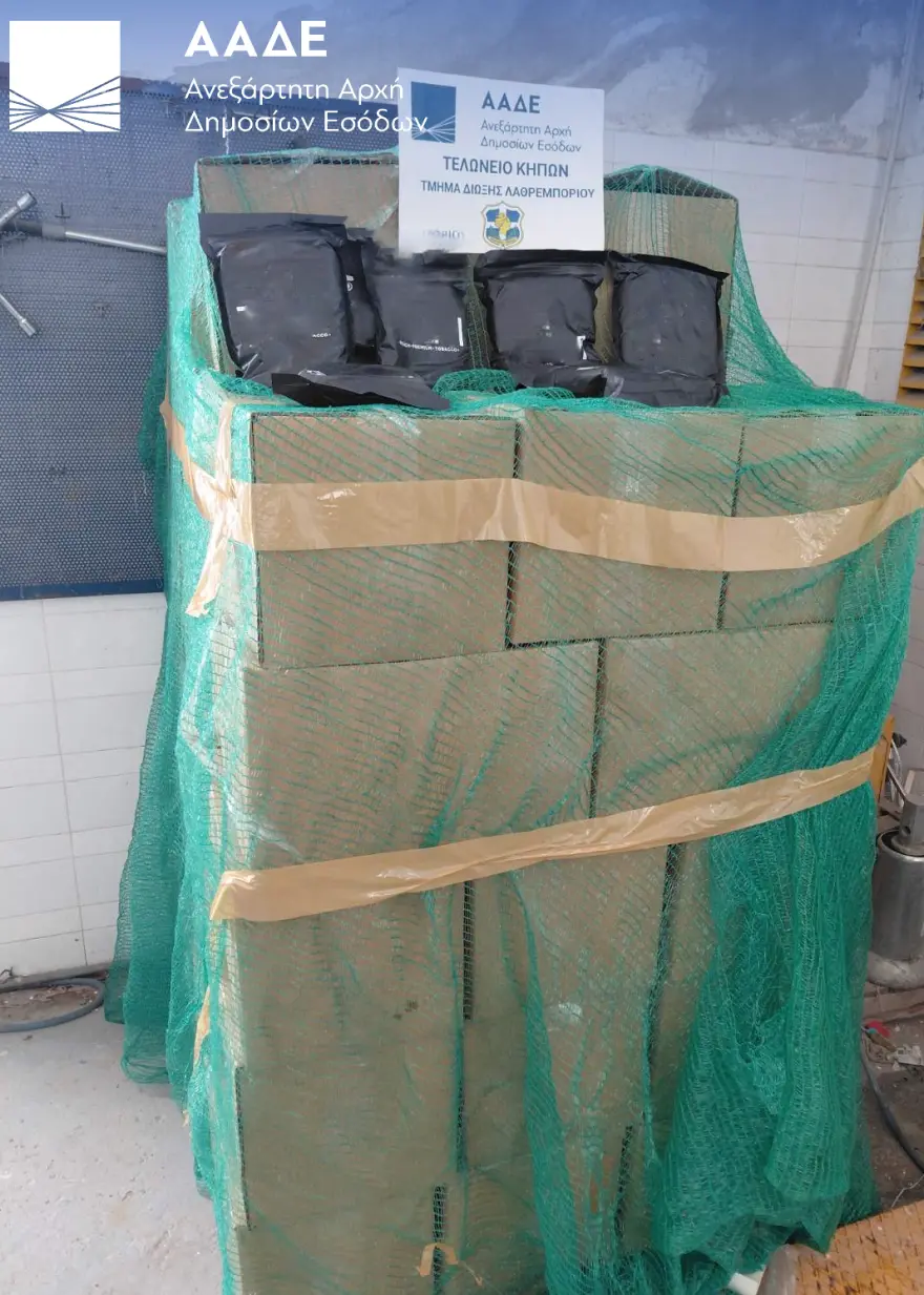 Μετά από ενδελεχή έλεγχο, βρέθηκαν σε χαρτοκιβώτια 963 συσκευασίες μείγματος αρωματικού καπνού για ναργιλέ, συνολικού βάρους 963 kg, ο οποίος δεν αναγραφόταν στα παραστατικά.