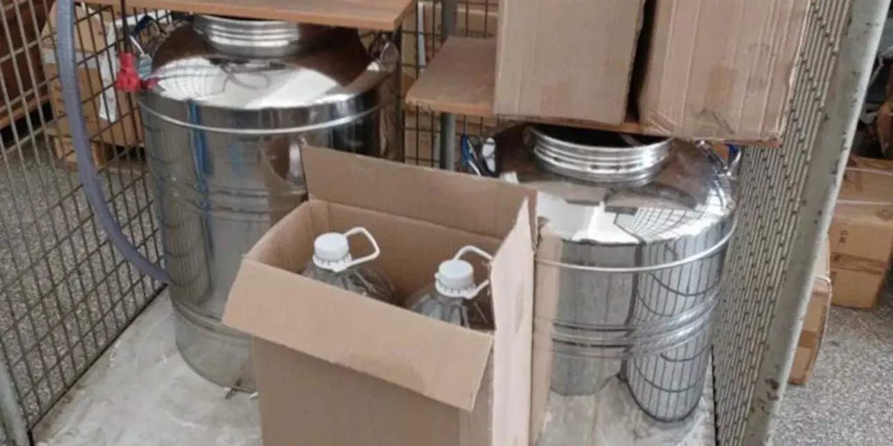 Το παράνομο – και απολύτως επικίνδυνο για την υγεία – αλκοόλ παρασκευαζόταν και εμφιαλωνόταν σε παράνομο εμφιαλωτήριο, στην ταράτσα του κτιρίου.