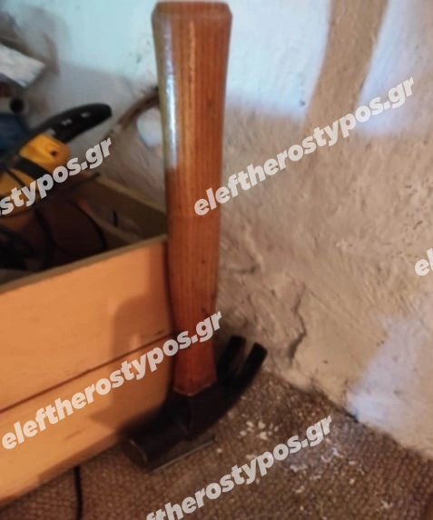 Στις φωτογραφίες διακρίνεται το σφυρί με το οποίο ο δράστης τραυμάτισε θανάσιμα την γυναίκα στο κεφάλι. Αφού την σκότωσε με το σφυρί, αποφάσισε να κρύψει το άψυχο κορμί της στο πατάρι.
