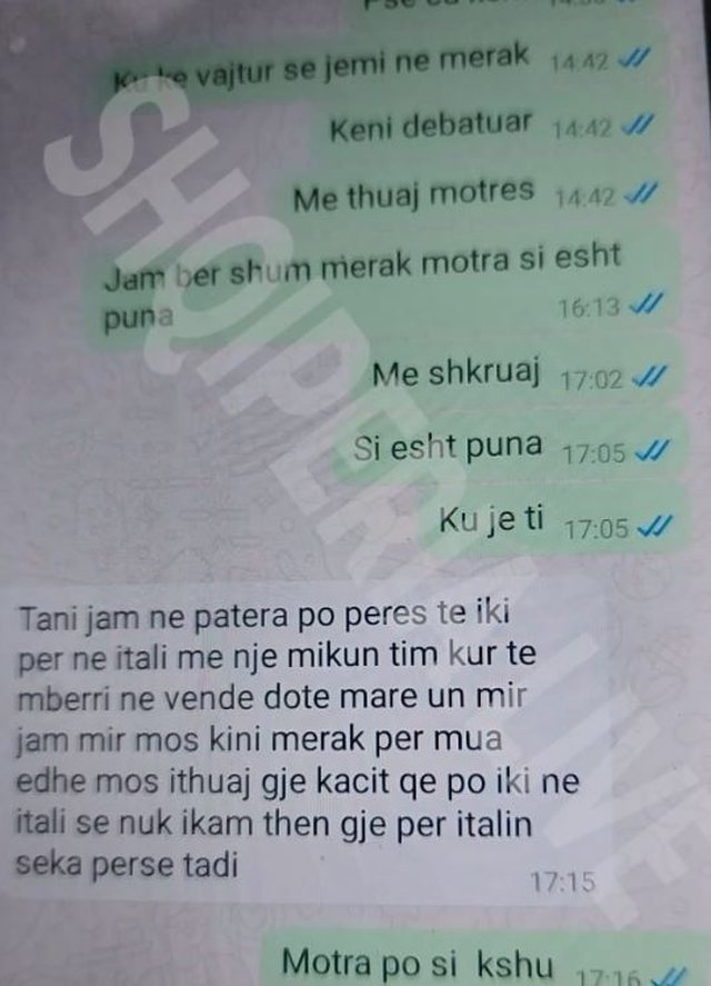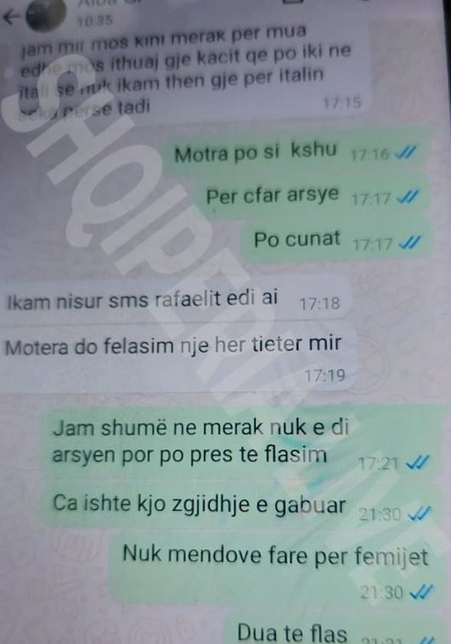 Η αδερφή της γυναίκας συνέχισε να ζητά απαντήσεις για το πού βρίσκεται. «Τώρα είμαι στην Πάτρα. Μετά θα φύγω για Ιταλία με έναν φίλο μου. Όταν φτάσουμε, θα σε πάρω εγώ. Είμαι καλά, μην ανησυχείτε. Μην πείτε τίποτα στον … ότι φεύγω για Ιταλία. Δεν έχω πει τίποτα για αυτό το ταξίδι», ήταν η απάντηση που έλαβε, ρωτώντας γιατί.
