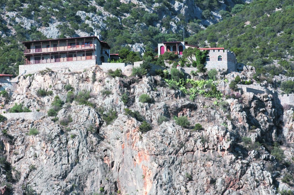 Σύμφωνα με ιστορικούς, η περιοχή κατοικείτο από τον 17ο αιώνα και ο βράχος πάνω στον οποίο βρίσκεται σήμερα το μοναστήρι χρησίμευε ως παρατηρητήριο για να βλέπουν τις επιδρομές πειρατών στην περιοχή του Κορινθιακού. Το 1994, όταν ο Αρχιεπίσκοπος ήταν μητροπολίτης Θηβών και Λεβαδείας, βλέποντας για πρώτη φορά το μέρος οραματίστηκε ότι θα φτιάξει ένα μοναστήρι πάνω στα ερείπια μιας μονής. Οταν το κατάφερε, δεν σταμάτησε εκεί. Κάτω από τον βράχο υπάρχουν εκτάσεις της εκκλησίας, μέρος της οποίας χρησιμοποιείται ως κατασκήνωση για μαθητές και σπουδαστές εκκλησιαστικών σχολών, ενώ το μεγαλύτερο κομμάτι διαθέτει πρόβατα, κότες, μποστάνια με λαχανικά, αλλά και δένδρα, όπως ροδιές, ελιές, λεμονιές κ.λπ.