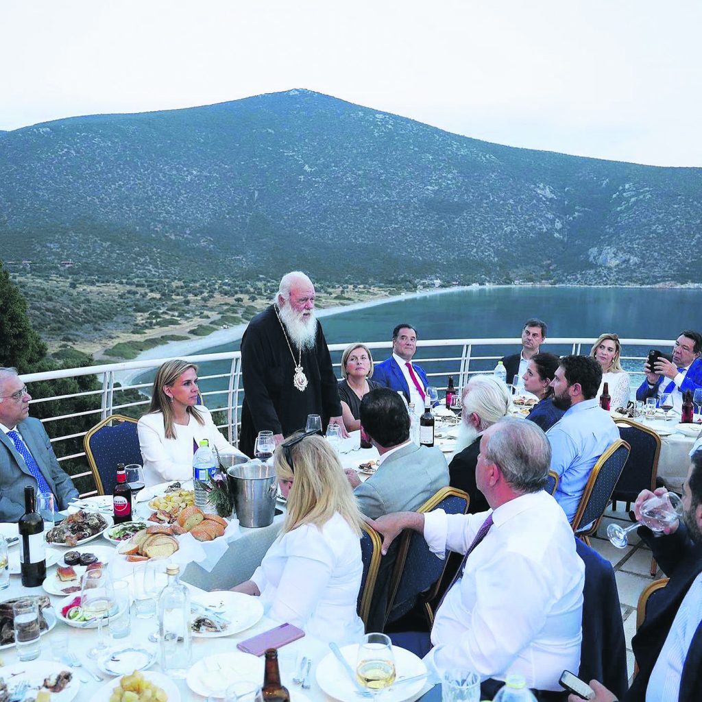 Εκεί πριν από λίγες ημέρες ο Αρχιεπίσκοπος συνέφαγε με μερικούς εκλεκτούς φίλους από τον κλήρο και την πολιτική γιορτάζοντας την ονομαστική του εορτή. Σύμφωνα με πληροφορίες, ανάμεσά τους ήταν οι υπουργοί Αδωνις Γεωργιάδης και Τάκης Θεοδωρικάκος, οι αναπληρωτές υπουργοί Θοδωρής Σκυλακάκης, Μίνα Γκάγκα και οι υφυπουργοί Δόμνα Μιχαηλίδου, Σίμος Κεδίκογλου και Ζωή Ράπτη, αλλά και ο περιφερειάρχης Στερεάς Ελλάδος Φάνης Σπανός και ο δήμαρχος Λεβαδέων Ιωάννης Ταγκαλέγκας.