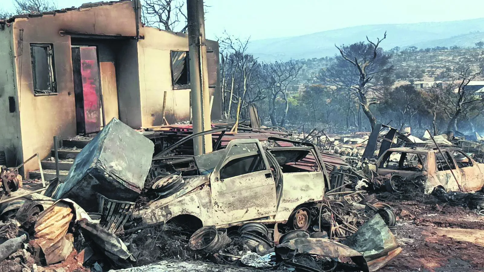 Παρασκευή πρωί λίγο μετά τις 7.00 περνάμε το μπλόκο της Νέας Ζωής Μάνδρας την ώρα που οι αστυνομικοί διαπληκτίζονται έντονα με κατοίκους, όπως συμβαίνει συχνά τις τελευταίες ημέρες. «Αφήστε με να περάσω, θέλω να πάω στο σπίτι μου για να δω τι έχει γίνει», φωνάζει μία οδηγός και παράλληλα διαμαρτύρεται γιατί σε ένα άλλο αυτοκίνητο δίνεται άδεια. «Το αυτοκίνητο αυτό μεταφέρει νερά και φάρμακα, γι’ αυτό πέρασε, δεν μπορώ να σας αφήσω, κινδυνεύει η ζωή σας», της εξηγεί ο αστυνομικός, αλλά γρήγορα στο φραστικό επεισόδιο προστίθενται και άλλοι κάτοικοι και τα… αίματα ανάβουν. Στην ευρύτερη περιοχή κάθε οικισμός είναι και μια πύρινη πληγή. Στο Μικρό Κατερίνη Μάνδρας η τηλεόραση κρέμεται στον τοίχο ενός σπιτιού που δεν υπάρχει πια σε ένα δυστοπικό σκηνικό που αποτυπώνει τον πύρινο όλεθρο των τελευταίων ημερών. Το εκρηκτικό κοκτέιλ ανυπόφορης ζέστης και ισχυρών ανέμων μοιάζει ανίκητο, ειδικά όταν ο αέρας δεν επιτρέπει τη συμμετοχή των πτητικών μέσων στην κατάσβεση ή όταν απαιτείται κατακερματισμός των πυροσβεστικών δυνάμεων, λόγω των πολλών πυρκαγιών που ξέσπασαν από τη Λακωνία έως τη Ρόδο.
