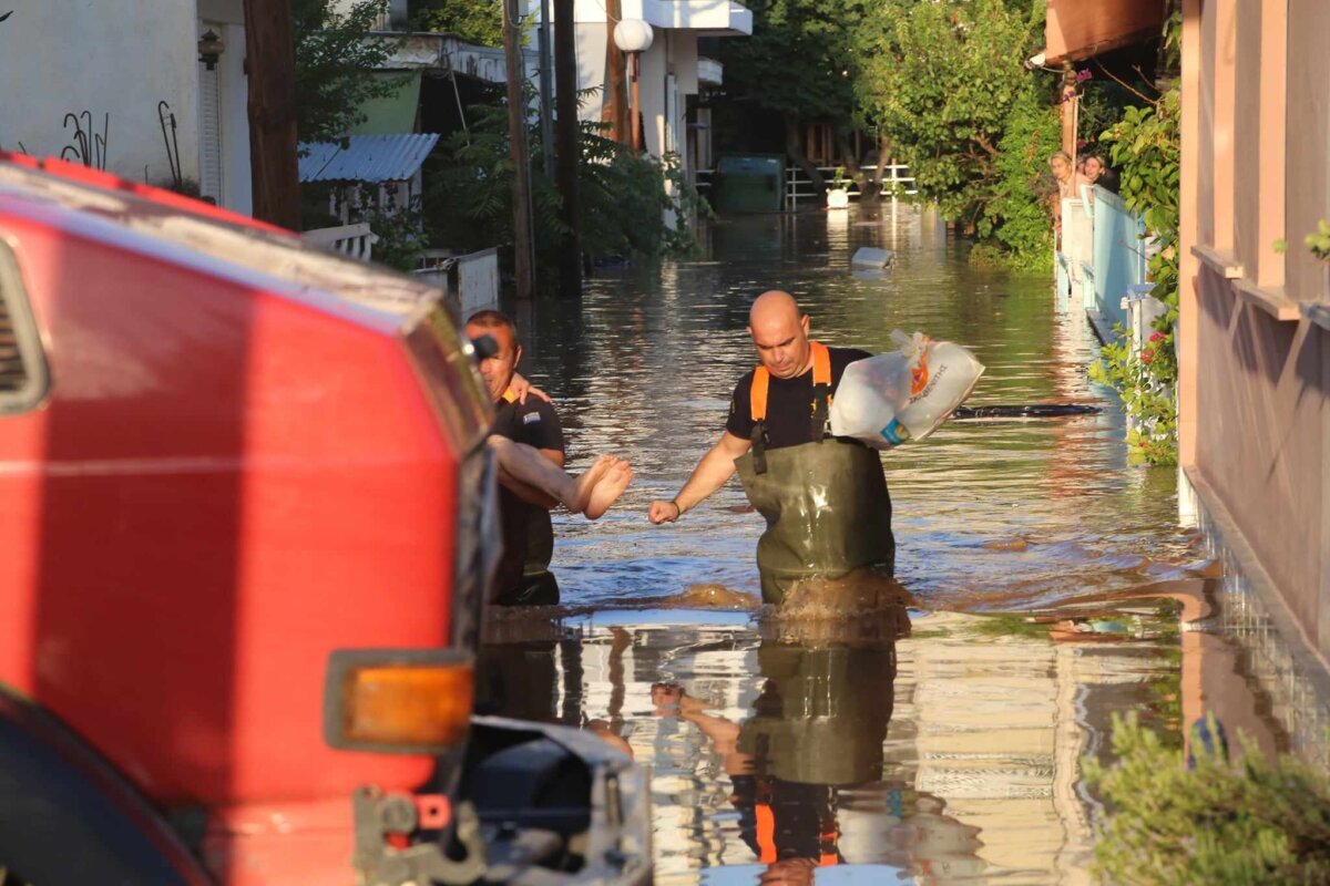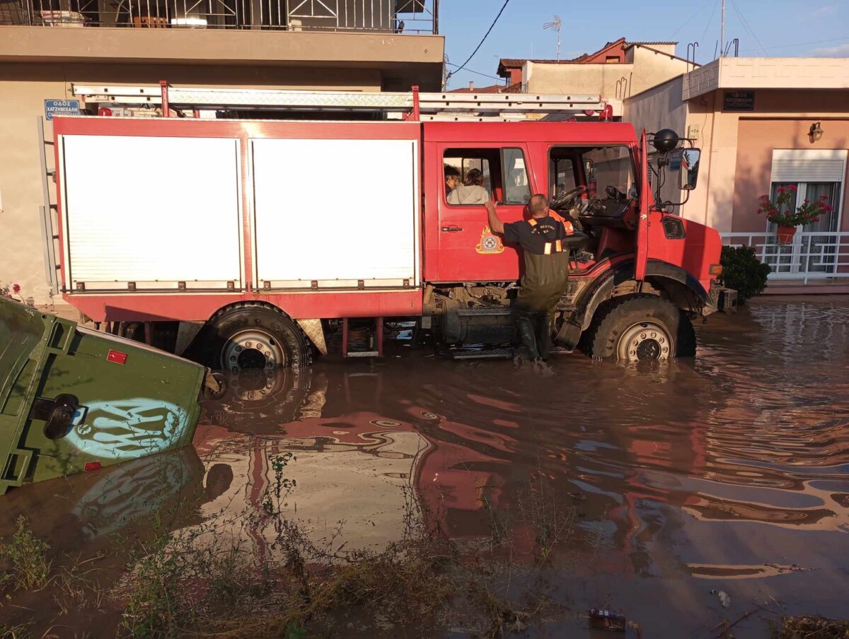 Πυροσβέστες απεγκλωβίζουν κόσμο στη συνοικία του Αγίου Θωμά στη Λάρισα