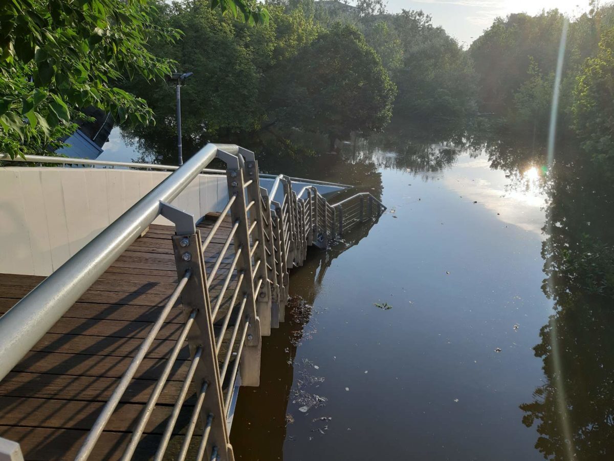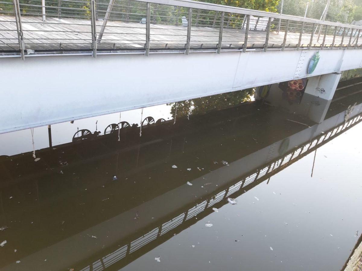 Το ανησυχητικό είναι ότι το νερό πλησιάζει πολύ την πεζογέφυρα του Αλκαζάρ, από την οποία έχει απαγορευθεί με κορδέλες η διέλευση πεζών.