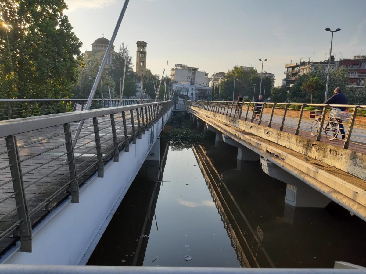 Στην εσωτερική κοίτη του Πηνειού πλησίον του κέντρου της Λάρισας τα ύδατα έχουν καλύψει όλη σχεδόν την εσωτερική κοίτη του ποταμού.