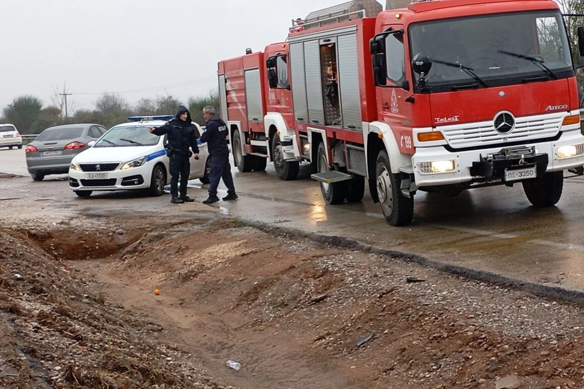 Η Εθνική Οδός έκλεισε προσωρινά με την κυκλοφορία των οχημάτων να διεξάγεται μέσω παρακαμπτήριας οδού.