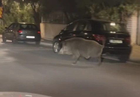 Σε βίντεο που αναρτήθηκε στα μέσα κοινωνικής δικτύωσης, καταγράφεται η στιγμή που ένα μεγάλο αγριογούρουνο κάνει αμέριμνα τη «βόλτα» του σε δρόμο της περιοχής.