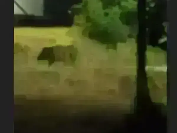Όπως ακούγεται και στο βίντεο ένας σκύλος γαβγίζει έντονα, ενώ το αγριογούρουνο ατάραχο κινείται στην περιοχή.