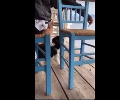 «πήγε μαζί με την παρέα του σε μία ψαροταβέρνα στην Αιδηψό που τη λένε «Στέλλα». Κορόιδευε το ζώο, έπαιζε με την πείνα του, γέλαγε που το κλώτσησε και το έριξε στην θάλασσα. Η παρέα του ακούγεται ξεκάθαρα στο βίντεο να χασκογελάει ενώ δεν ακούγεται κανένας να τον σταματάει, μάλιστα αποπειράται αμέσως μετά να κάνει ακριβώς το ίδιο και στην άλλη γατούλα» αναφέρουν οι αυτόπτες μάρτυρες.