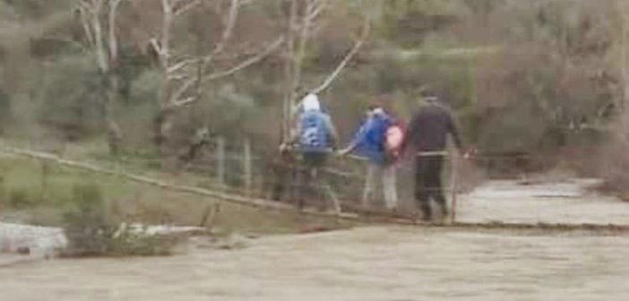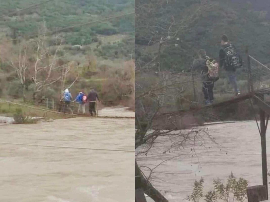 Οι μαθητές αντί να επιστρέψουν στα σπίτια τους από άλλη, ασφαλέστερη διαδρομή, διέσχισαν 70 μέτρα αιωρούμενης συρμάτινης γέφυρας πάνω από τα θολά, φουσκωμένα και ορμητικά νερά του ποταμού Ευήνου.
